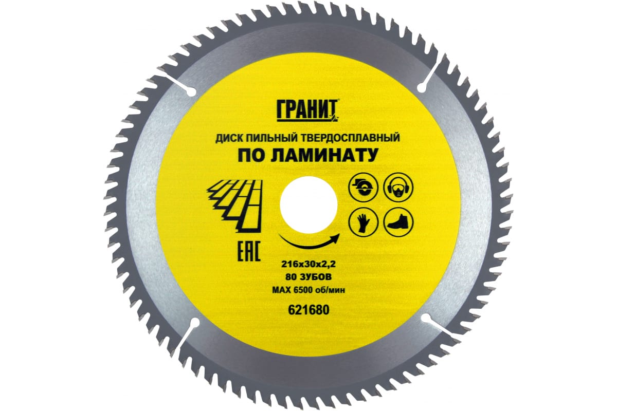 Диск пильный твердосплавный ПО ЛАМИНАТУ (216х30 мм; 80Z; 2.2 мм) ГРАНИТ 621680