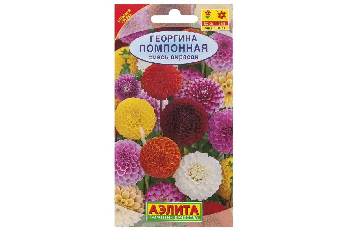 Семена Аэлита Георгина Помпонная, смесь окрасок, однолетний, 0.3 г 4601729050596