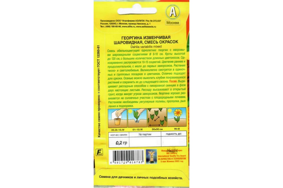 Семена Аэлита Георгина Шаровидная, смесь окрасок, однолетний, 0.2 г 4601729016783
