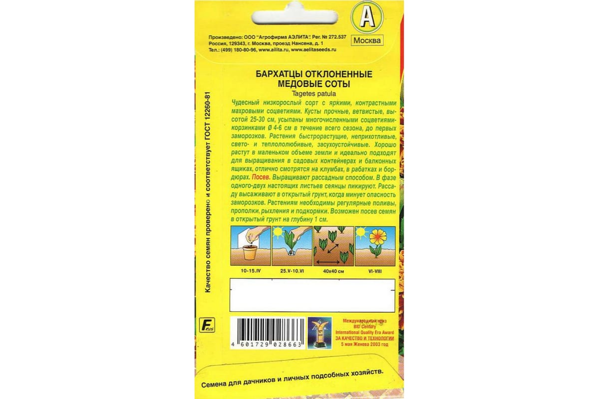 Семена Аэлита Бархатцы Медовые соты отклоненные, однолетний, 0.3 г 4601729028663