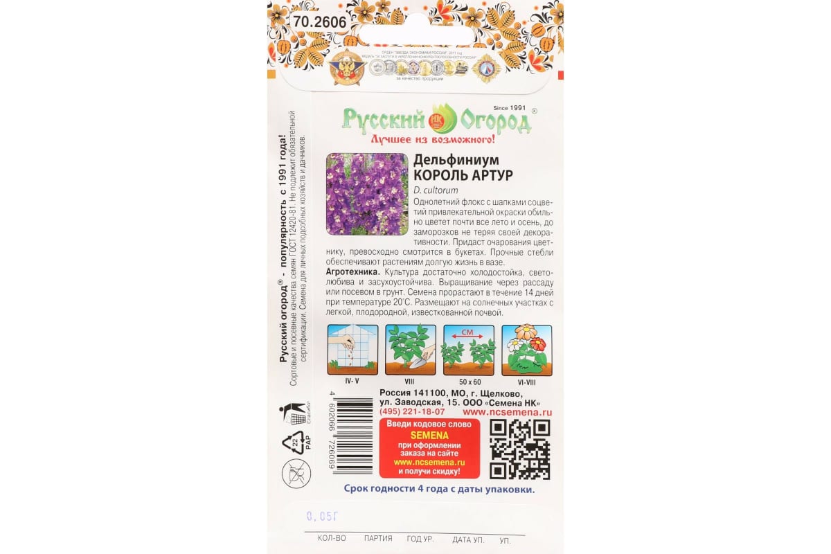 Семена цветов Сималенд Дельфиниум многолетний Король Артур 0.05 г 7635036 подходят для выращивания на частном участке.