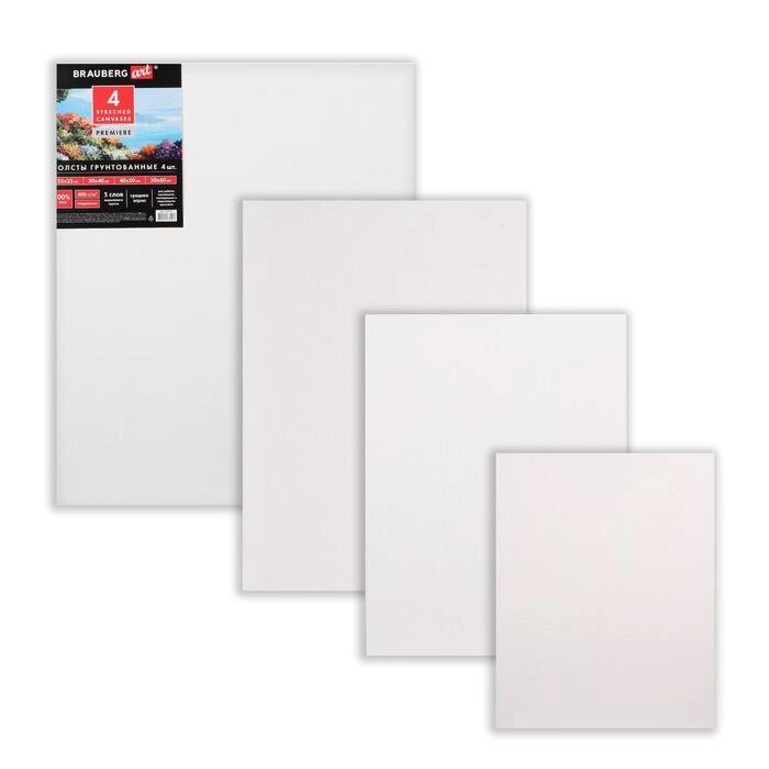 Набор холстов на подрамнике, ЛЕН 100%4 штуки (2535, 3040, 4050, 5060 см), среднезернистый, 400 г/м2