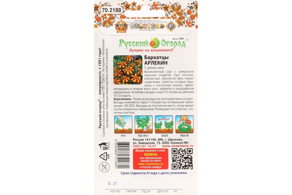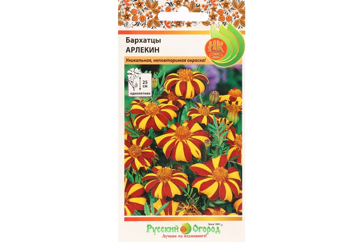 Семена цветов Сималенд Бархатцы Арлекин 0.2 г 7635010 подходят для выращивания на частном участке.