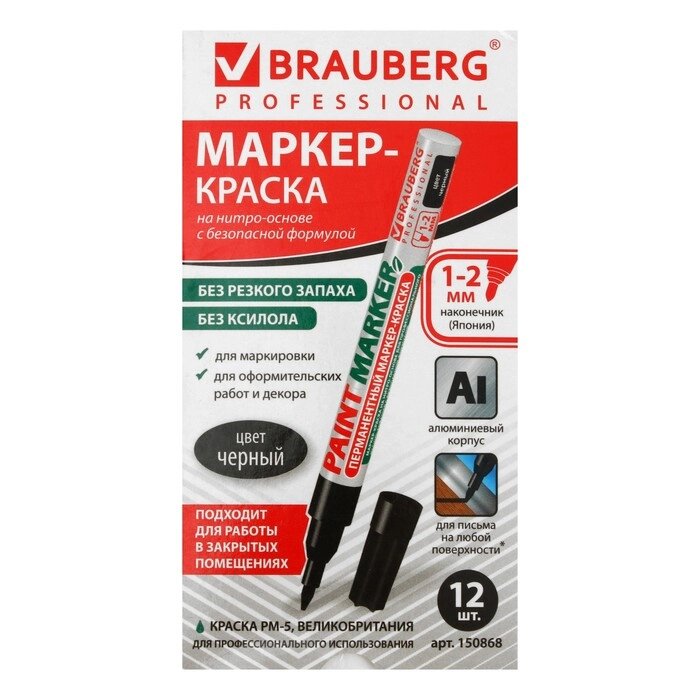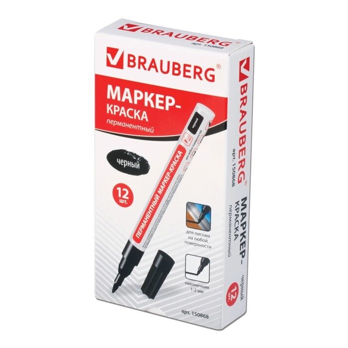 Маркер-краска (лаковый) 2.0 мм BRAUBERG, металлический корпус, чёрная нитро-основа