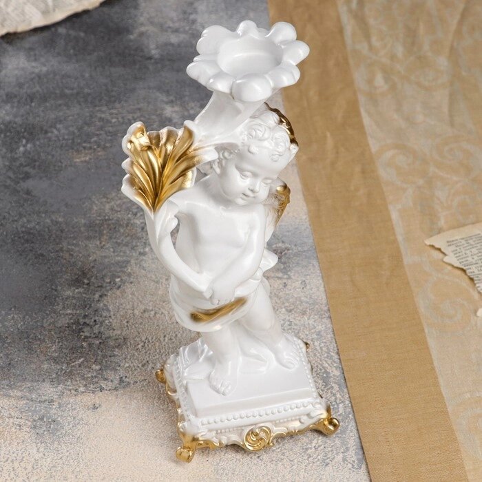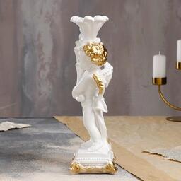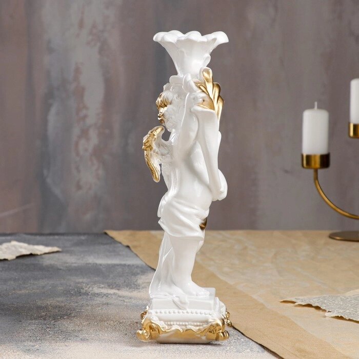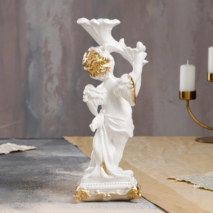 Статуэтка "Ангел с подсвечником", бело-золотая, 32 см