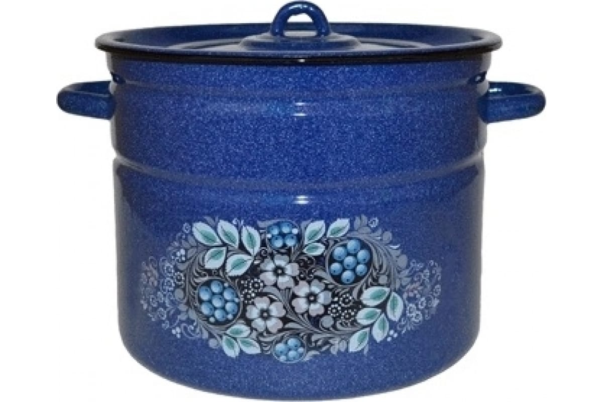 Эмалированная кастрюля СТАЛЬЭМАЛЬ цилиндр, 12.5 л, синий с зерном, голубика ПС6954 подходит для всех типов плит, включая индукционные.
