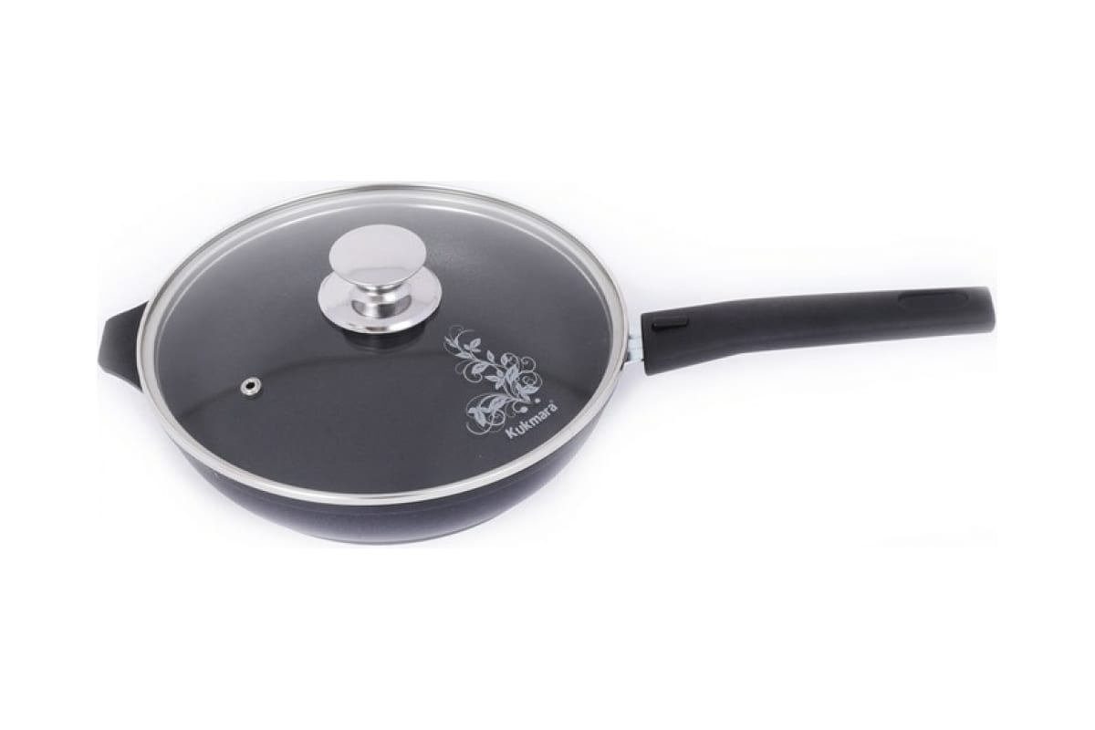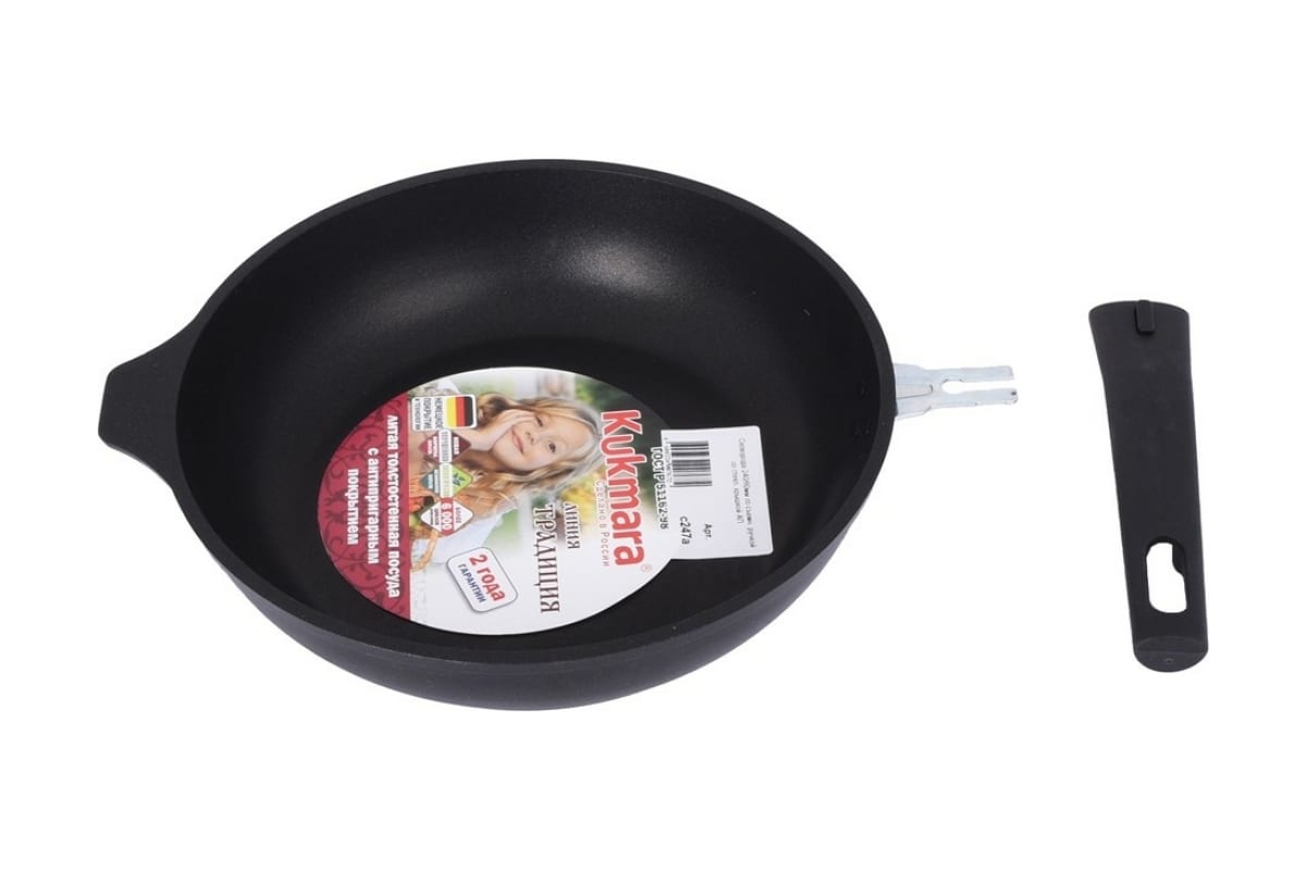 Сковорода Kukmara со съемной ручкой стеклянной крышкой антипригарное покрытие литой алюминий ПС2836 предназначена для приготовления еды.