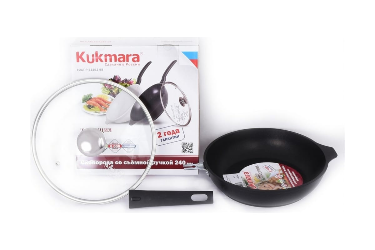 Сковорода Kukmara со съемной ручкой стеклянной крышкой антипригарное покрытие литой алюминий ПС2836