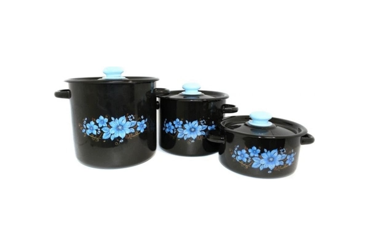 Эмалированный набор посуды Сибирские товары 16 небесный цветок ПС7789 используется для приготовления пищи.
