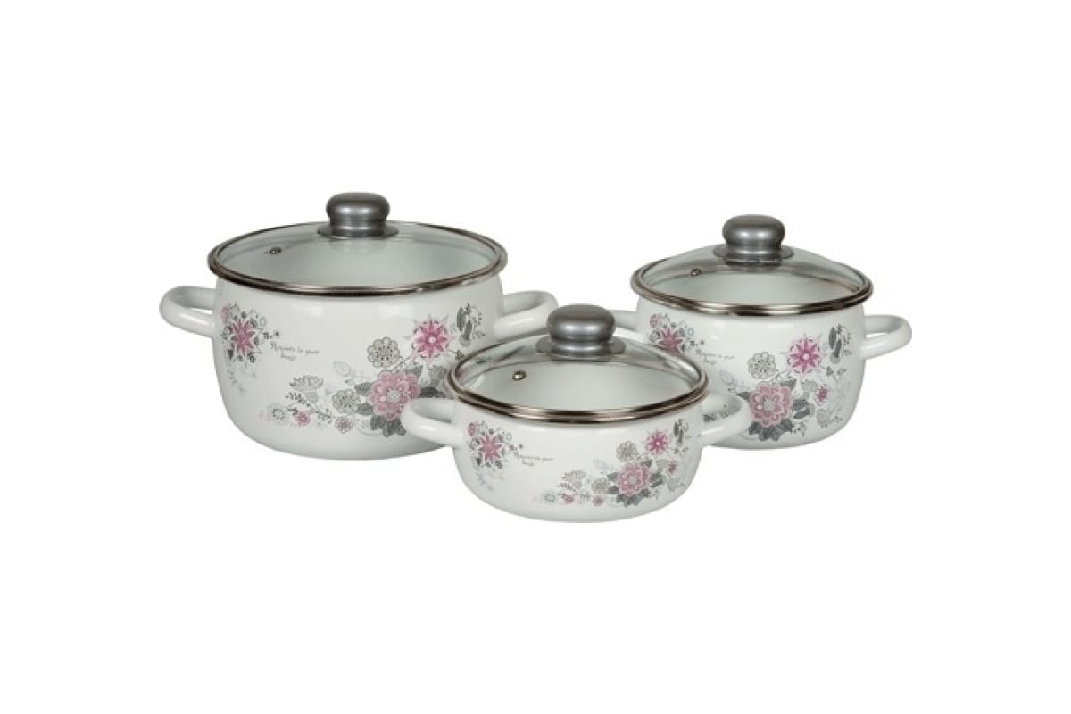 Эмалированный набор посуды СТАЛЬЭМАЛЬ 07 Весенний романс 3 предмета, белоснежная ХП1958
