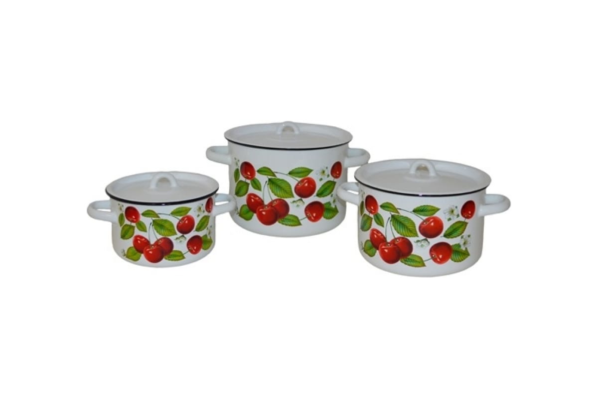 Эмалированный набор посуды СТАЛЬЭМАЛЬ 33 Вишня ягоды 3 предмета, белоснежная, цилиндр, 1.5 л, 2.9 л, 3.9 л ТП16631 предназначен для готовки.