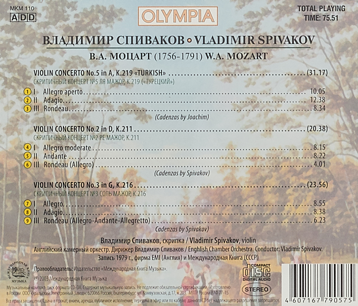 - Альтернативное название Владимир Спиваков. В. А. Моцарт. Скрипичные концерты № 5, 2, 3