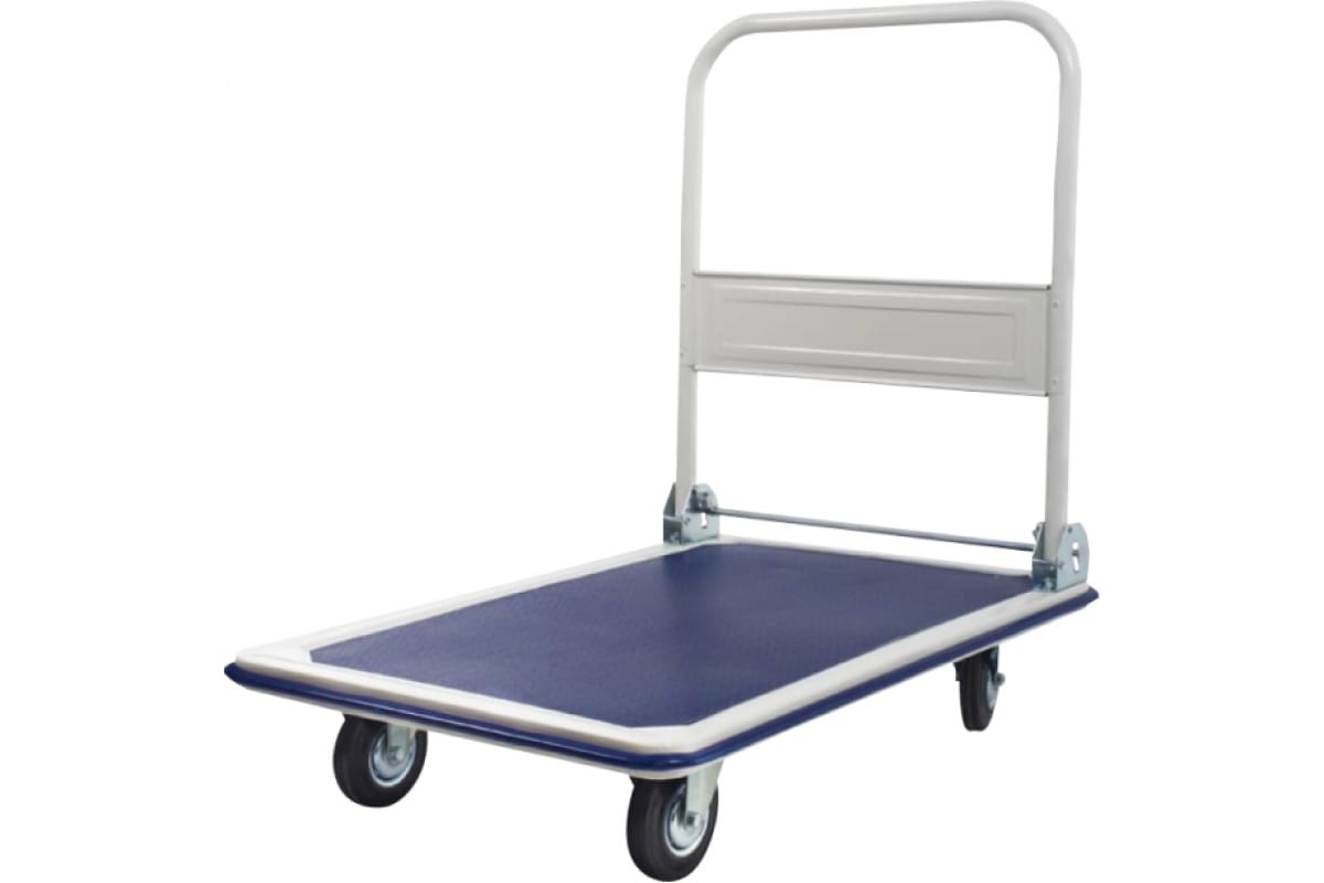 Для снижения вероятности получения травм и удобства прохождения в узких проходах края платформы имеют закругленную форму. При необходимости ручку тележки можно сложить, благодаря чему при хранении и транспортировке тележка занимает мало места.