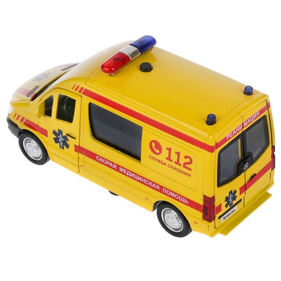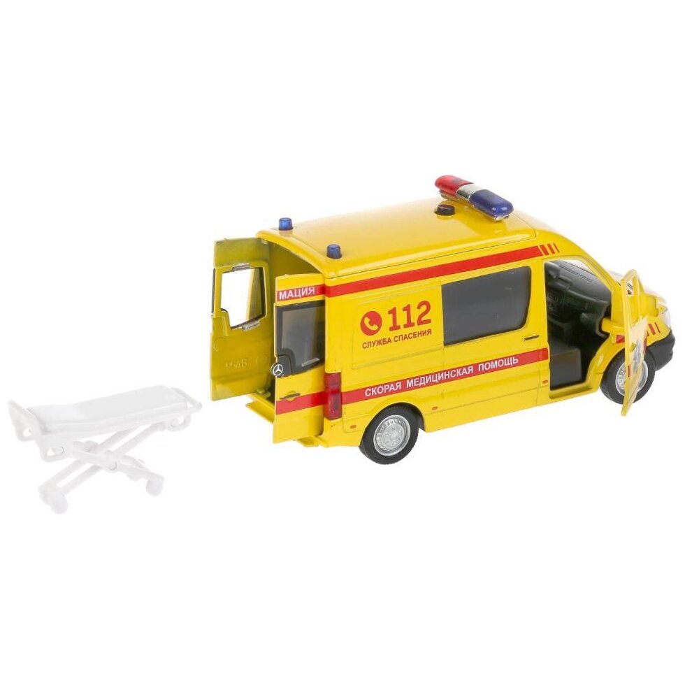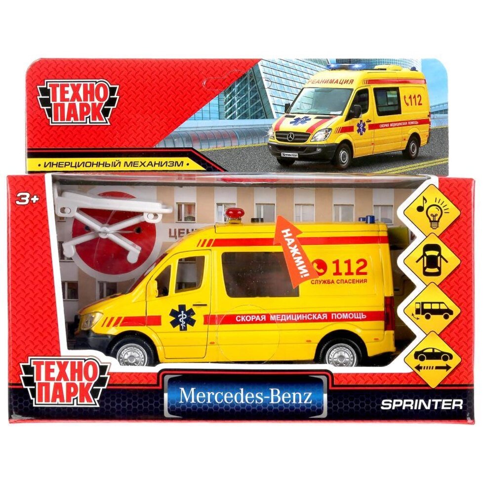 Машина металл свет-звук "Мерседес-бенц Спринтер реанимация" 14 сминерционная Технопарк SPRINTERVAN-14SLAMB-YE