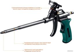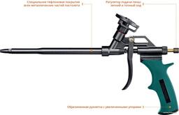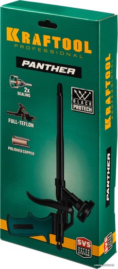 Пистолет для монтажной пены Kraftool PANTHER 06855_z02 предназначен для экономного использования монтажной пены.При использовании инструмент обеспечивает увеличенный выход пены и уменьшает эффект расширения. Он полностью покрыт тефлоновым покрытием, что обеспечит моментальную прочистку и исключит простой в работе. Преимущества KRAFTOOL PANTHER 0855_z02Специальное тефлоновое покрытие всех металлических деталей Kraftool PANTHER 06855_z02 облегчает его очисткуИнновационная конструкция с двумя уплотнительными кольцами в корпусе и кольцом в сопле обеспечивает наилучшую герметичность, предотвращая попадание воздуха в пистолет, что минимизирует риск затвердевания пены внутри корпусаСтвол и игольчатый клапан из нержавеющей стали увеличивают ресурс инструментаПолированный изнутри ствол препятствует застыванию пены внутри пистолетаИнновационный регулятор подачи пены имеет легкий и точный ход, а также предотвращает вращение игольчатого клапана, приводящее к быстрому износу прокладокПистолет для монтажной пены Kraftool PANTHER 06855_z02 предназначен для экономного использования монтажной пены.При использовании инструмент обеспечивает увеличенный выход пены и уменьшает эффект расширения. Он полностью покрыт тефлоновым покрытием, что обеспечит моментальную прочистку и исключит простой в работе. Преимущества KRAFTOOL PANTHER 0855_z02Специальное тефлоновое покрытие всех металлических деталей Kraftool PANTHER 06855_z02 облегчает его очисткуИнновационная конструкция с двумя уплотнительными кольцами в корпусе и кольцом в сопле обеспечивает наилучшую герметичность, предотвращая попадание воздуха в пистолет, что минимизирует риск затвердевания пены внутри корпусаСтвол и игольчатый клапан из нержавеющей стали увеличивают ресурс инструментаПолированный изнутри ствол препятствует застыванию пены внутри пистолетаИнновационный регулятор подачи пены имеет легкий и точный ход, а также предотвращает вращение игольчатого клапана, приводящее к быстрому износу прокладок