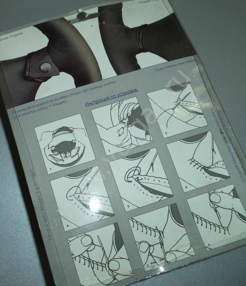 Оплетка на руль кожаная для ВАЗ 21213 Нива синие вставки