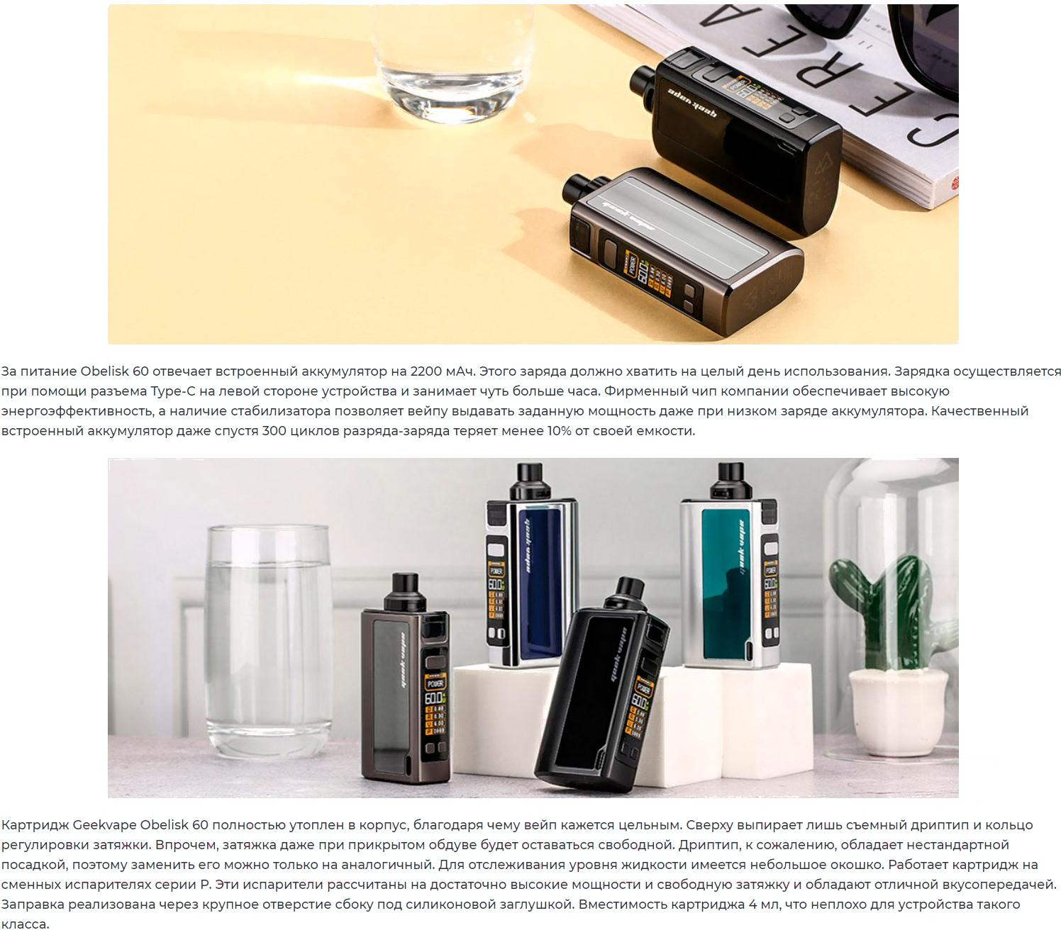 • Состав набора испаритель (2 шт), кабель для зарядки, батарейный блок