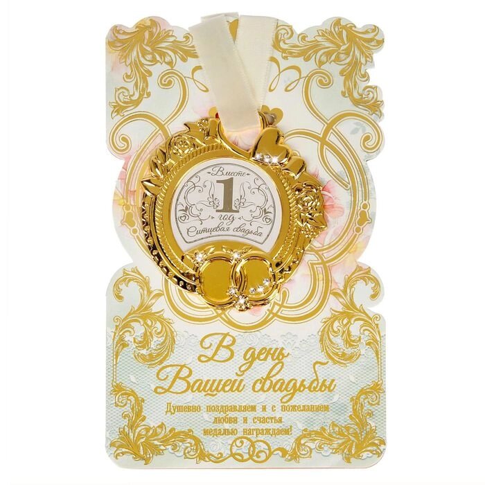 Медаль свадебная на открытке "Ситцевая свадьба"