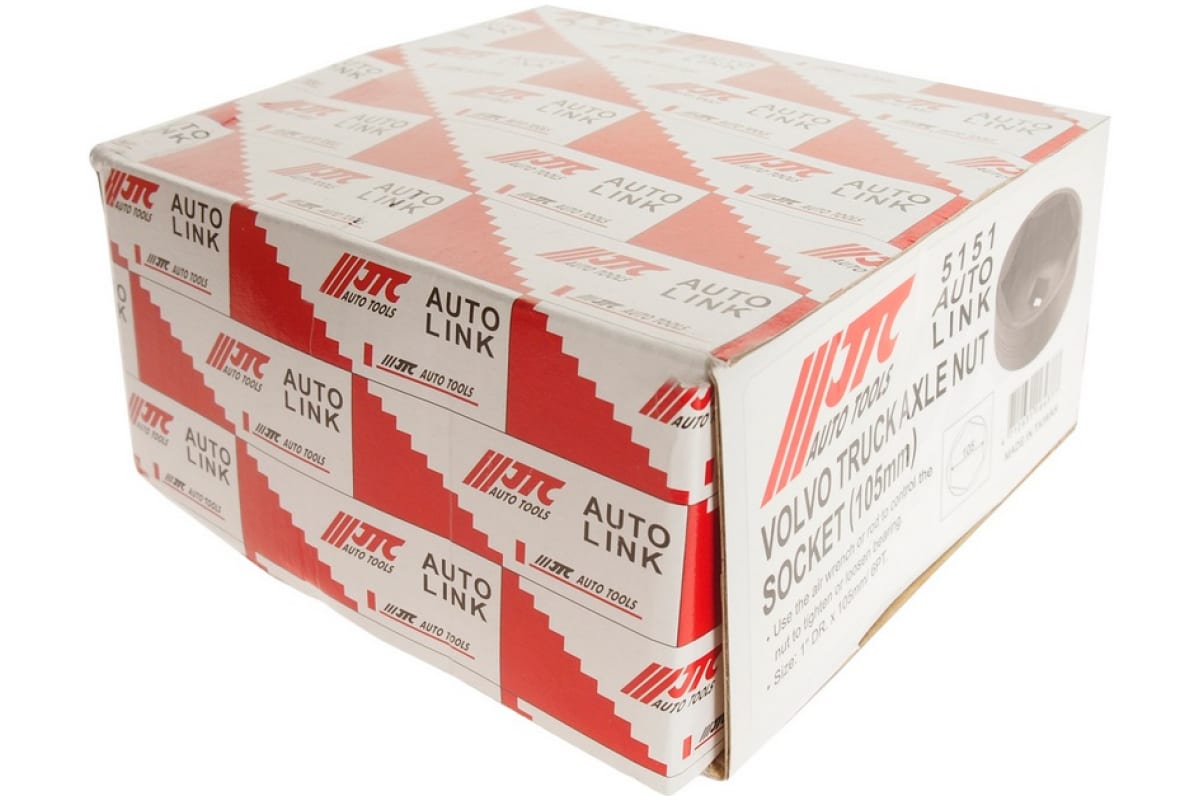 Шестигранная головка ступичная для грузовых автомобилей VOLVO 1 Dr.х 105мм JTC-5151 используется в ремонтных мастерских, автосервисах и на станциях ТО для монтажа и демонтажа ступичных гаек у грузовых автомобилей. Подходит для совместного применения с пневмогайковертом, что существенно упрощает работу с гайкой. Размер: 1" DR х 105 мм/6 граней.