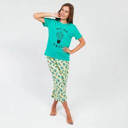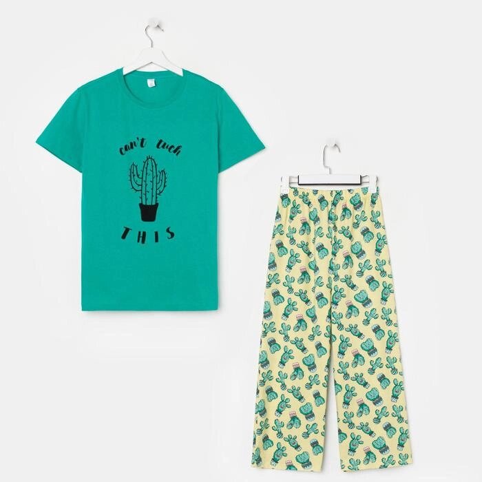 Комплект женская (футболка, брюки), цвет изумрудный/кактусы, размер 54