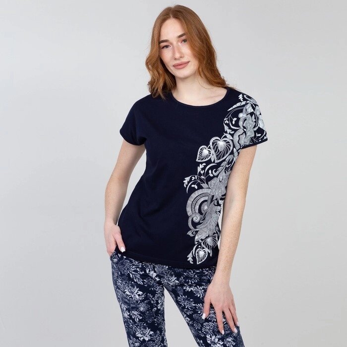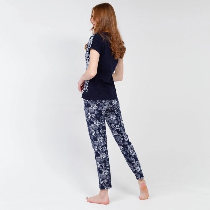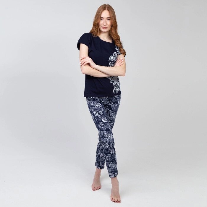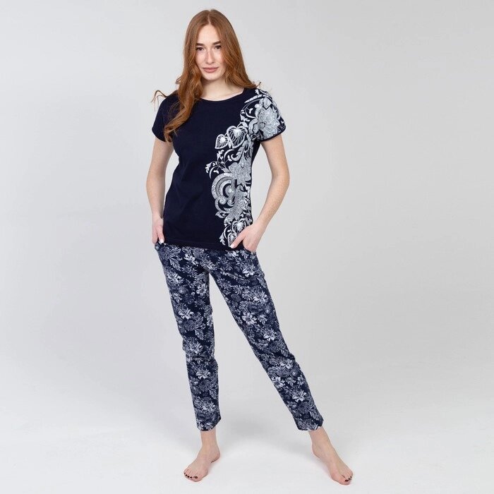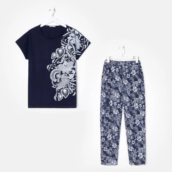 Пижама женская (футболка, брюки), цвет цветы, размер 50