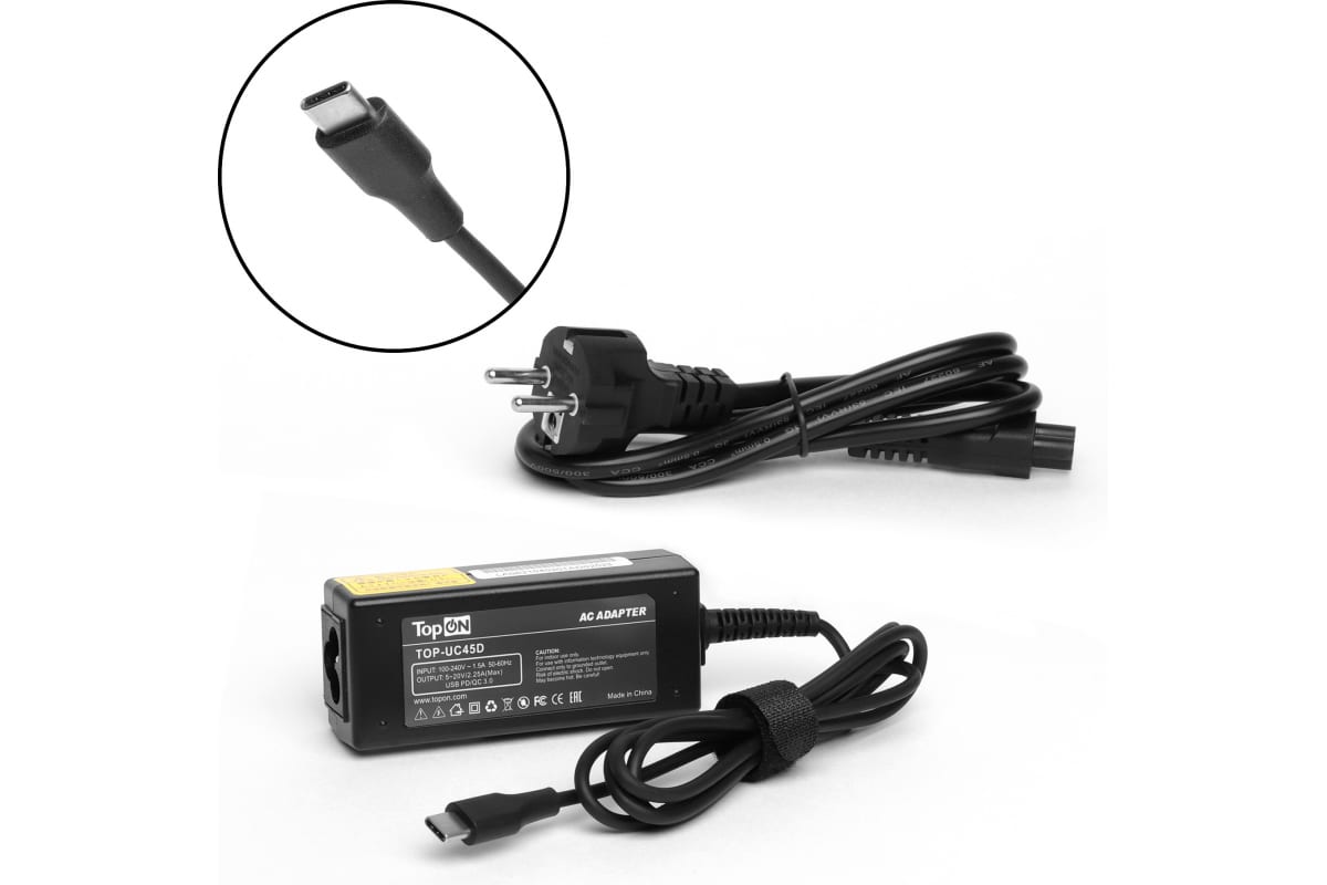 Блок питания TopOn 45W кабель Type-C, Power Delivery, Quick Charge 3.0, настольный TOP-UC45D оснащен фирменной системой защит: