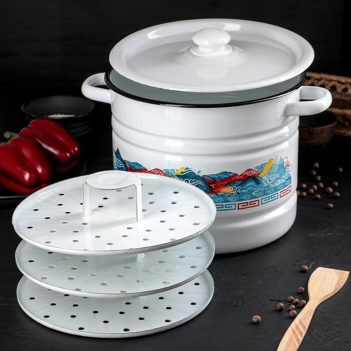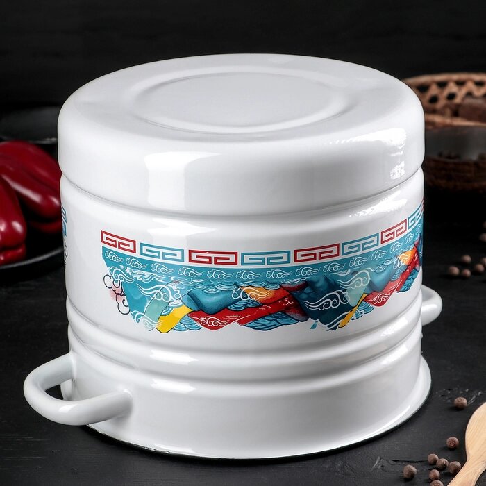 Мантоварка-позница, 9 л, декор, 3 вставки, пластмассовая ручка, МИКС