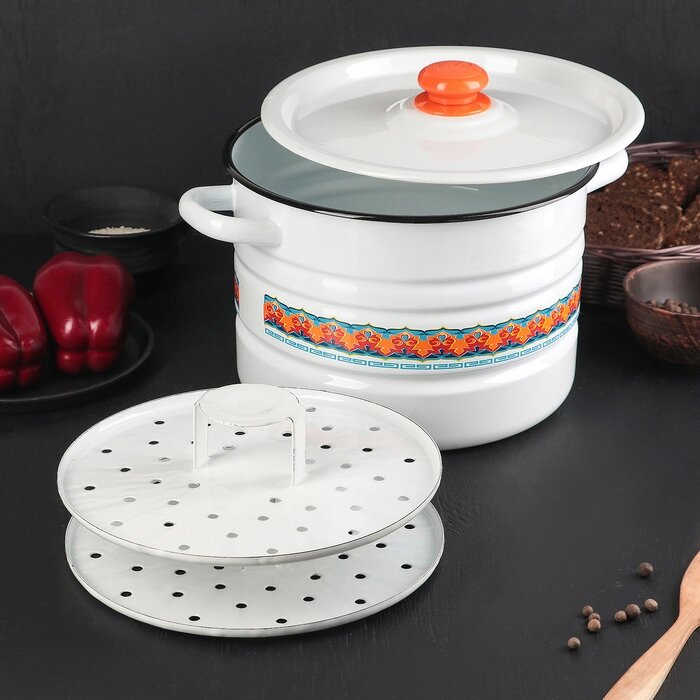Мантоварка-позница, 7,5 л, декор, 2 вставки, пластмассовая ручка МИКС