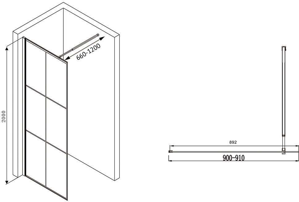 Душевой уголок Abber Immer Offen AG62090B 90x200 стекло прозрачное, профиль черный