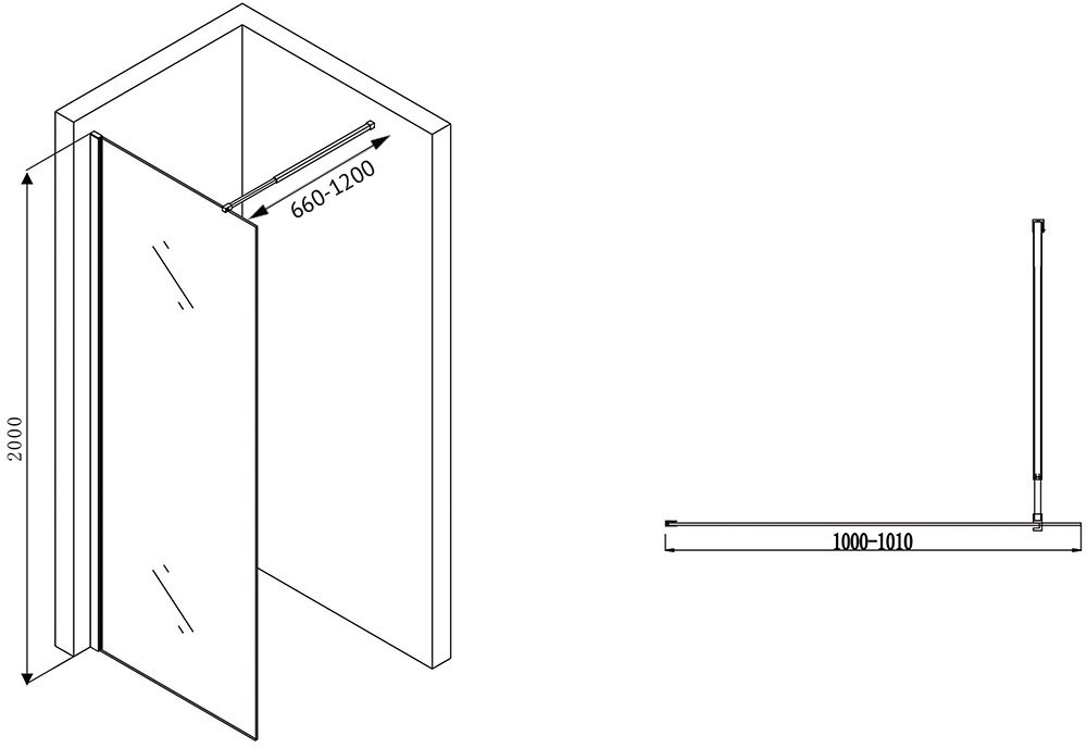 Душевой уголок Abber Immer Offen AG61100 100x200 стекло прозрачное, профиль хром
