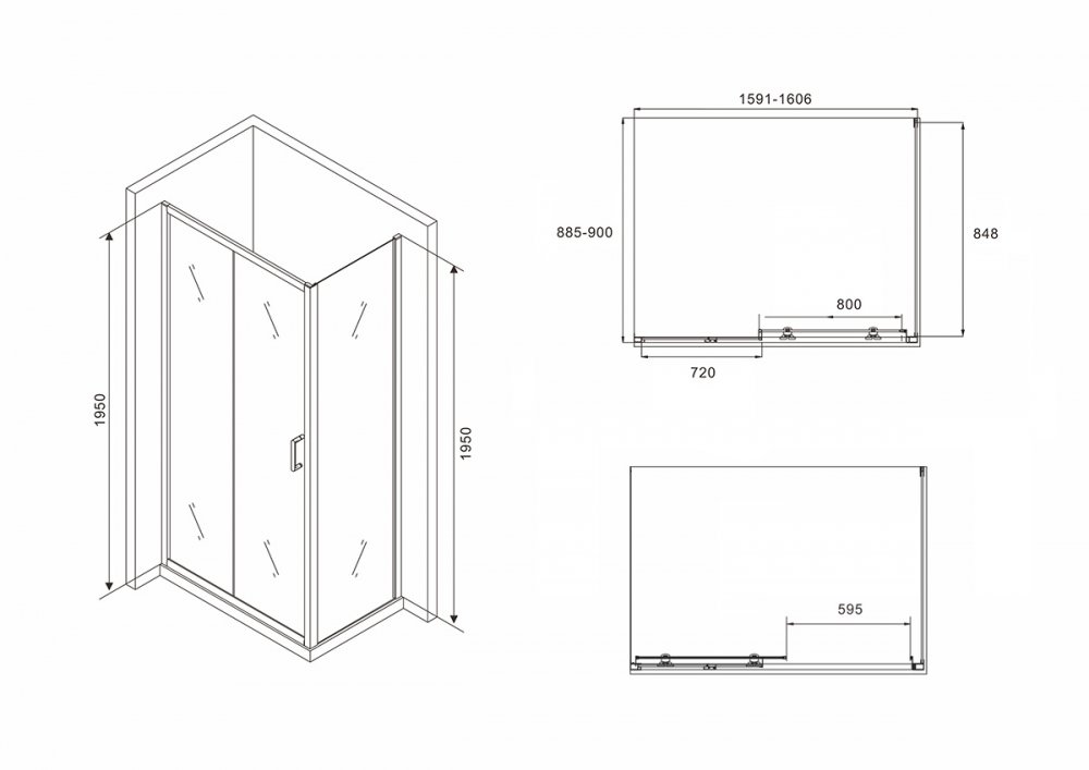 Душевой уголок Abber Schwarzer Diamant AG30160B-S90B160x90 стекла прозрачные, профиль черный