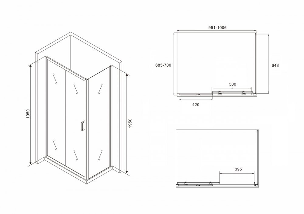 Душевой уголок Abber Schwarzer Diamant AG30100B-S70B 100x70 стекла прозрачные, профиль черный