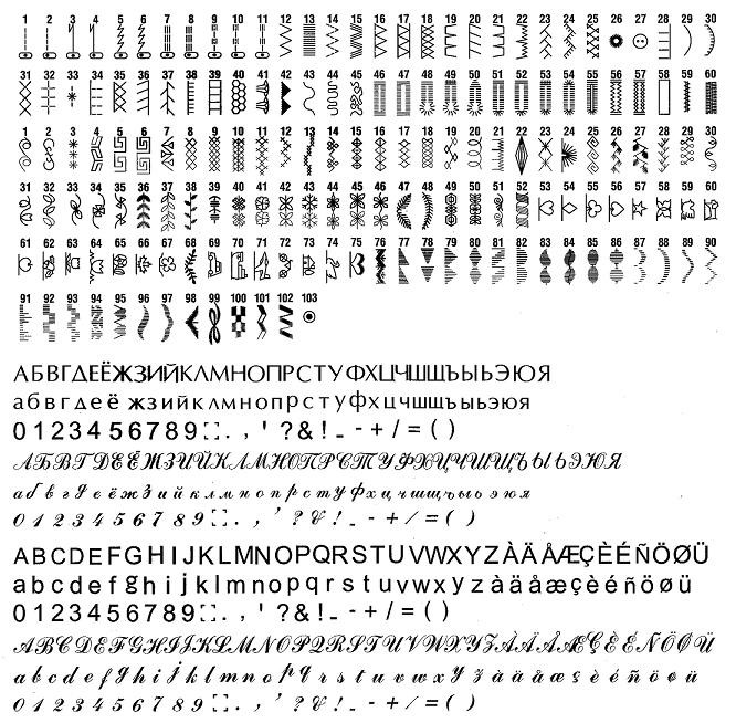 - Виды строчек алфавиты; имитация оверлока; квилтинг; узоры; рабочие строчки; декоративные строчки