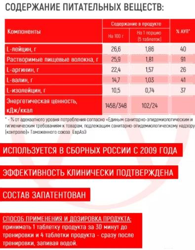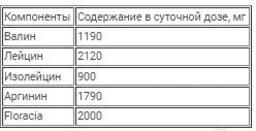 - Аминокислоты лейцин, изолейцин, валин, аргинин
