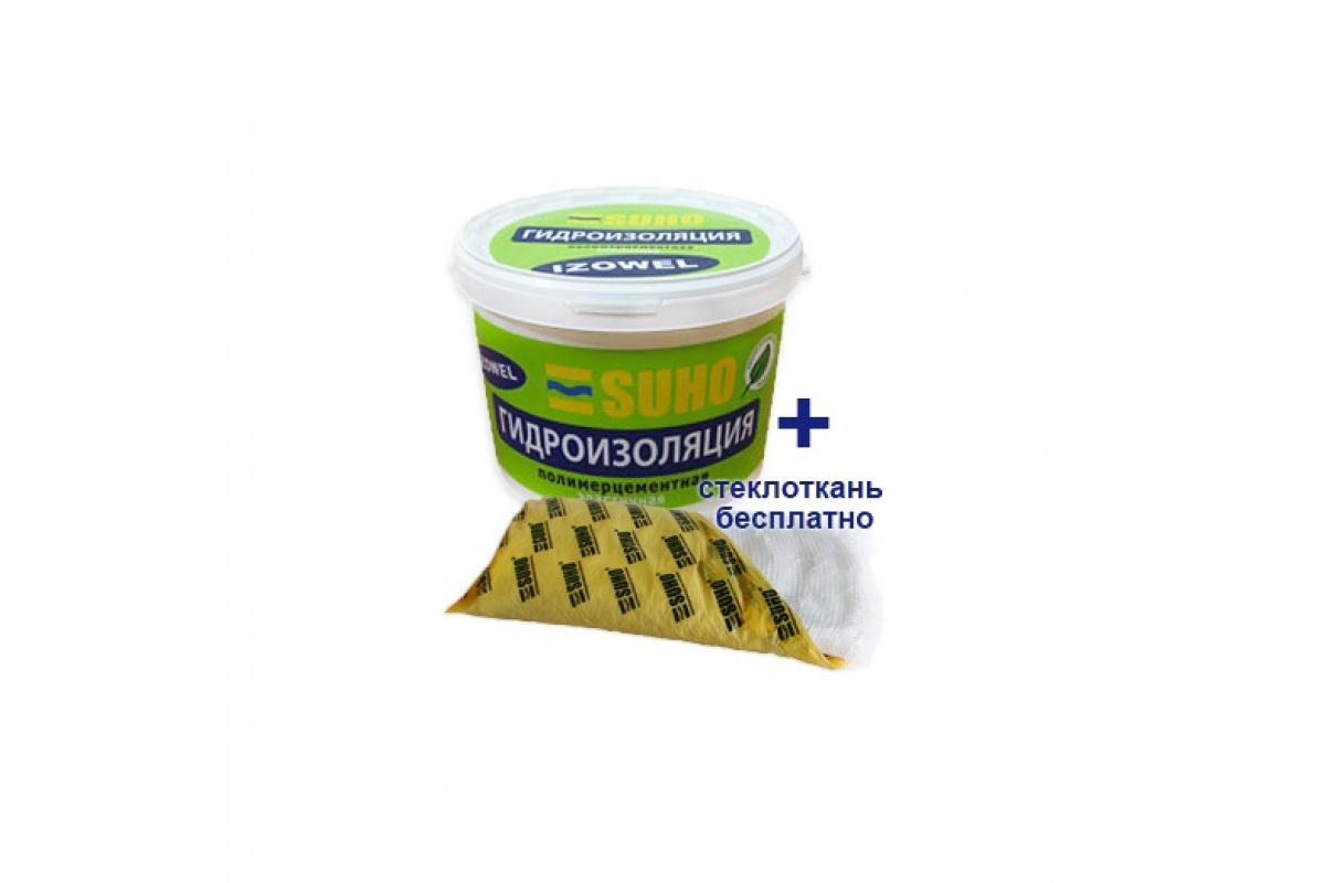 Сухая полимерцементная смесь - гидроизоляция IZOWEL 3 кг SUHO 0184 отличается износостойкостью и высокой устойчивостью к механическим нагрузкам (растяжению, сжатию). Обладает высокой адгезией к любым поверхностям (кирпичным, деревянным, бетонным, оштукатуренным, гипсокартонным, металлическим и др.), морозоустойчивостью. Поставляется с 1.5 м2 стеклоткани. Применяется для внутренних и наружных работ, для гидроизоляции: