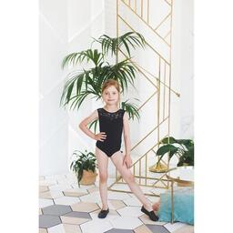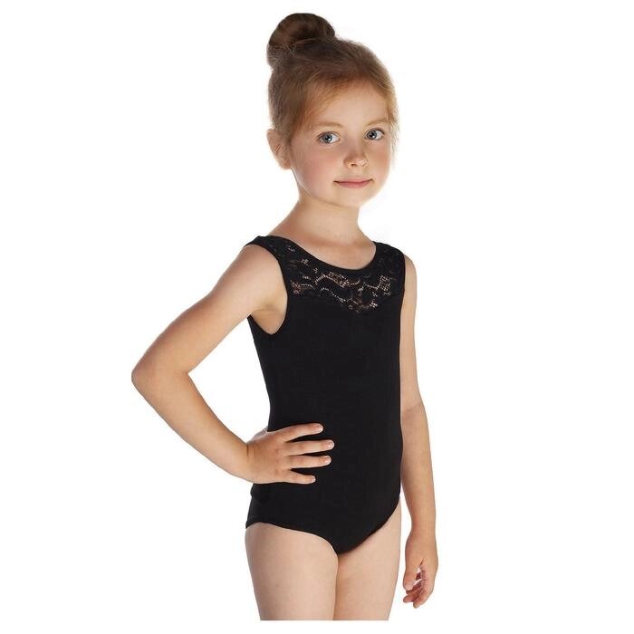 Купальник гимнастический, кокетка кружево, без рукава, размер 32, цвет чёрный
