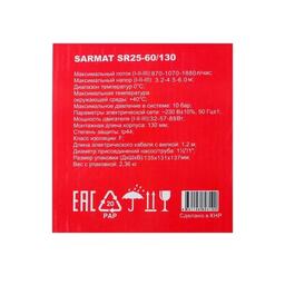 Насос циркуляционный SARMAT SR 25-60/130, напор 6 м, 72 л/мин, кабель 1.5 м, 35/54/82 Вт