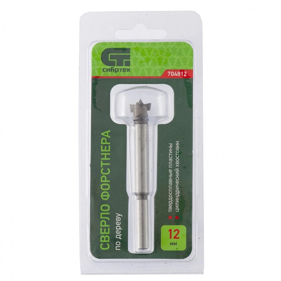 Сверло Форстнера по дереву, 12 мм, цилиндрический хвостовик Сибртех