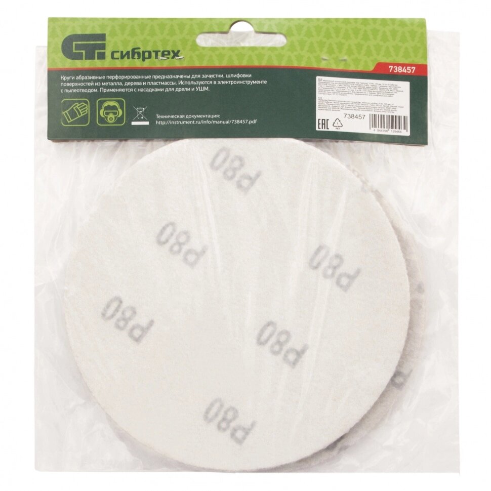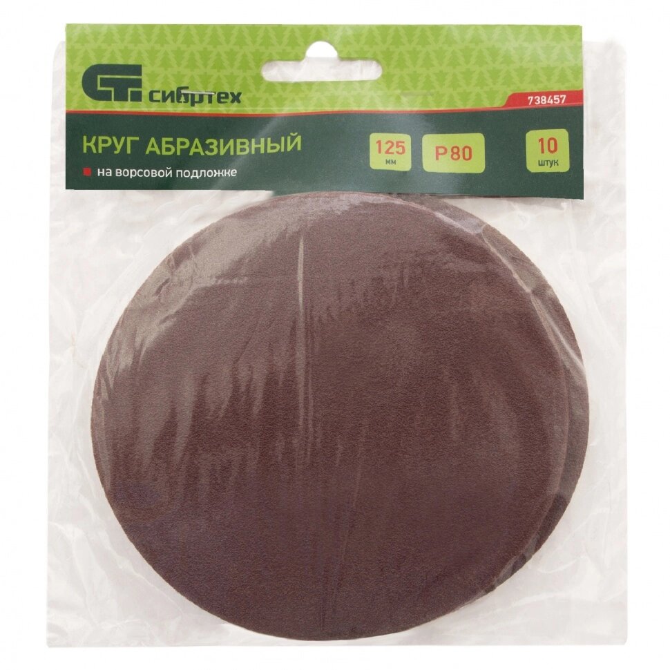 Круг абразивный на ворсовой подложке под "липучку", P 80, 125 мм, 10 шт Сибртех