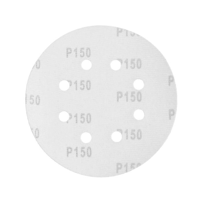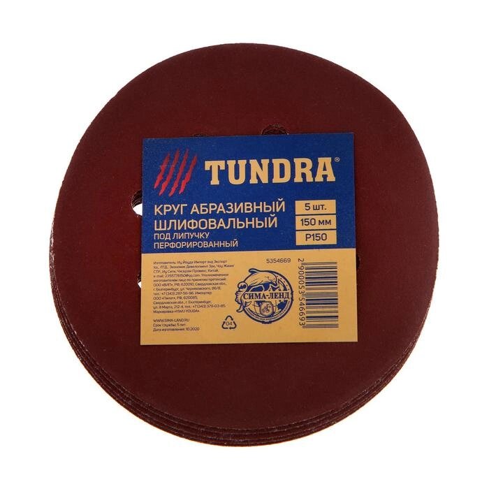 Круг абразивный шлифовальный под 'липучку' ТУНДРА, перфорированный, 150 мм, Р150, 5 шт.