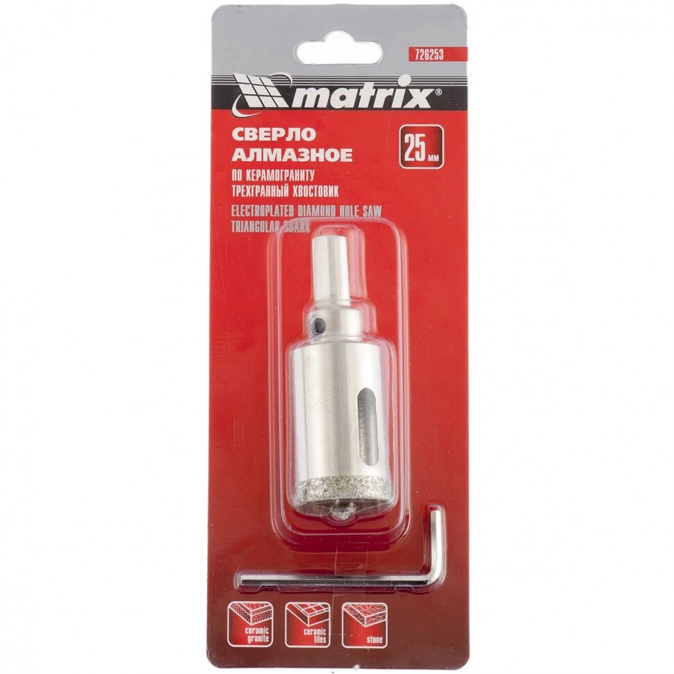 Сверло алмазное по керамограниту, 25 х 67 мм, трехгранный хвостовик Matrix