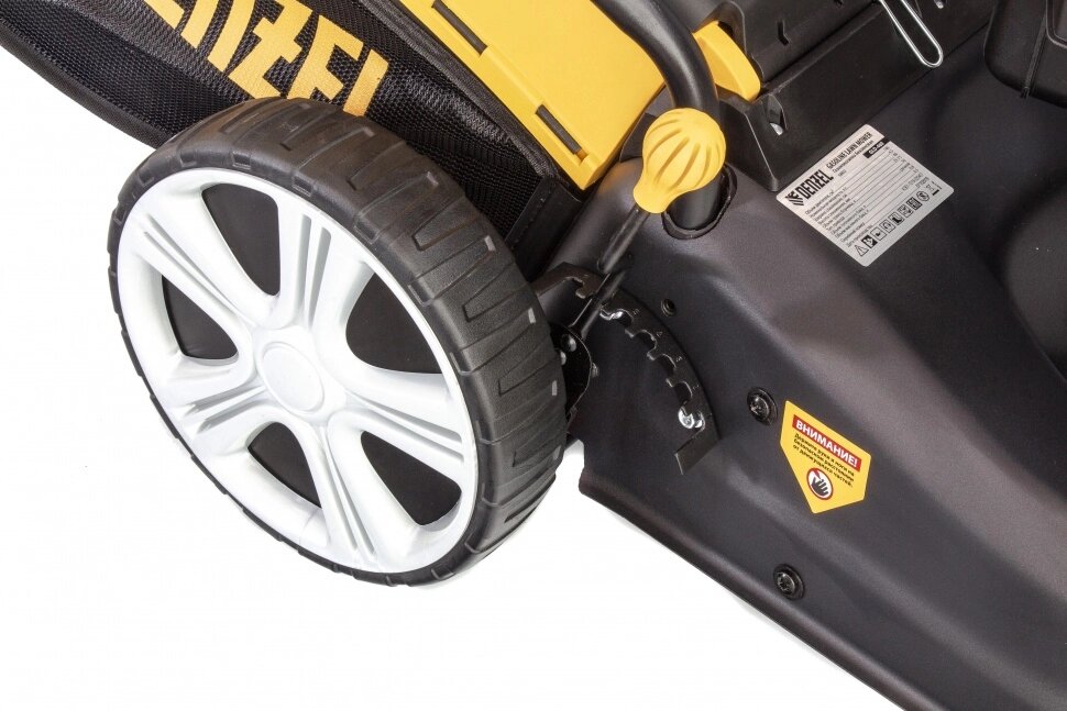 Газонокосилка бензиновая GLD-460, 146 куб. см, ширина 46 см, ручная, 7 уровней, травосборник 50 л Denzel