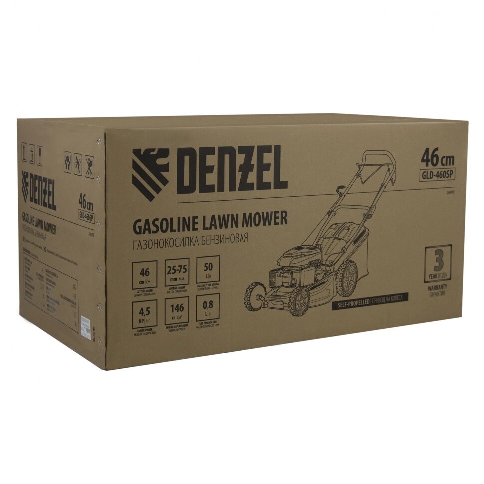 Газонокосилка бензиновая GLD-460SP, 146 куб. см, ширина 46 см, привод 7 уровней, травосборник 50 л Denzel