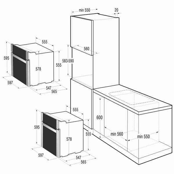 - Габариты (ВxШxГ), в сантиметрах 59,5x59,7x54,7