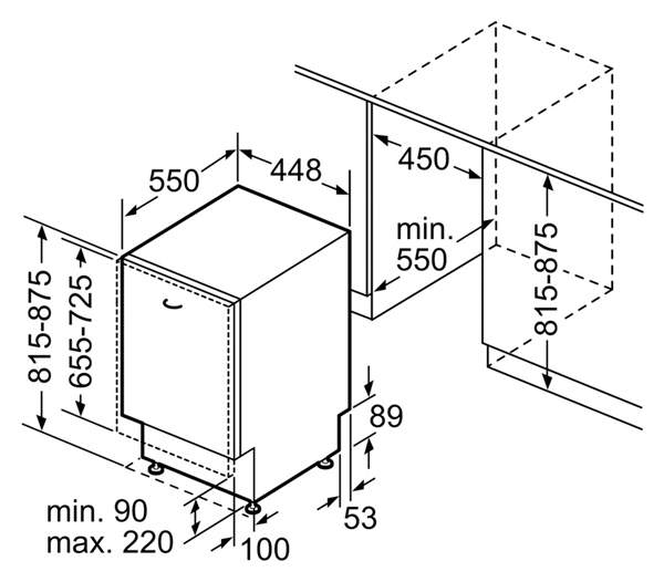 - Размер ниши (В*Ш*Г) 815-875*600*550 мм