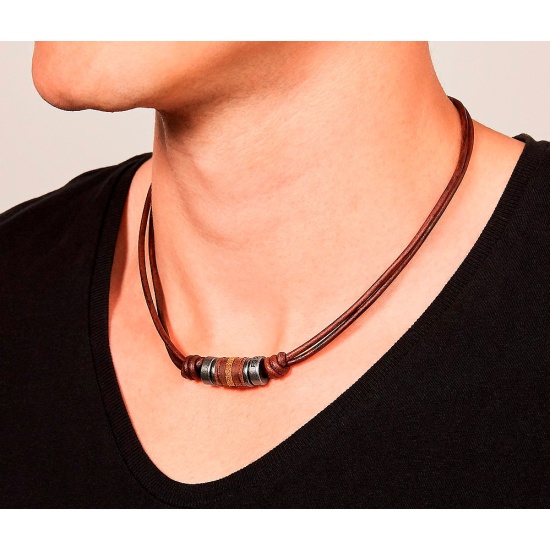 Стильная мужская подвеска из кожаных шнурков со стальными подвесками, прекрасно впишется в современный мужской образ. Регулируемая длина. Застежка-карабин.