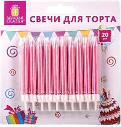 Набор свечей для торта Золотая сказка 591456 (20шт, розовый)
