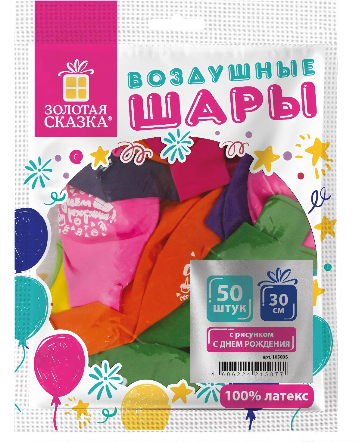Набор воздушных шаров Золотая сказка С днем рождения / 105005 (50шт, 10цв)