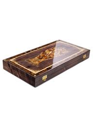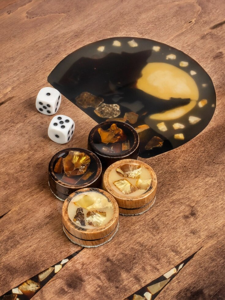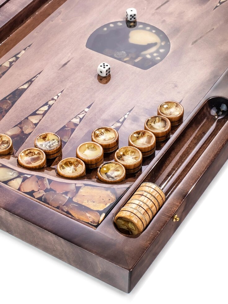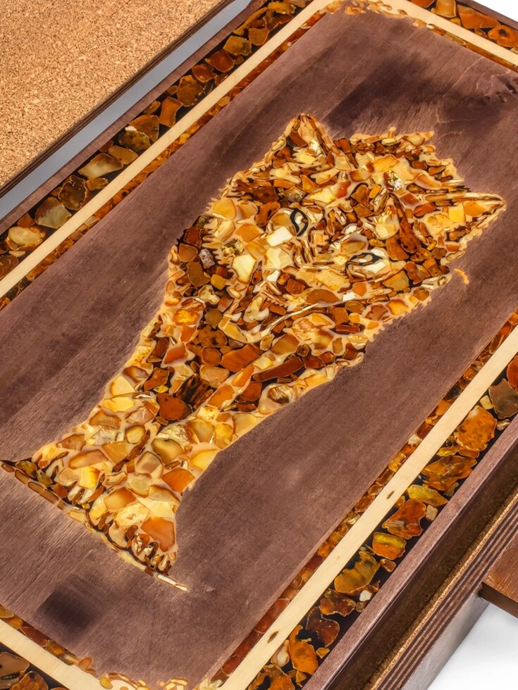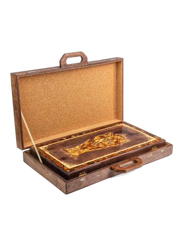 Комплект для игры в нарды, украшенный натуральным балтийским янтарём «Волк»