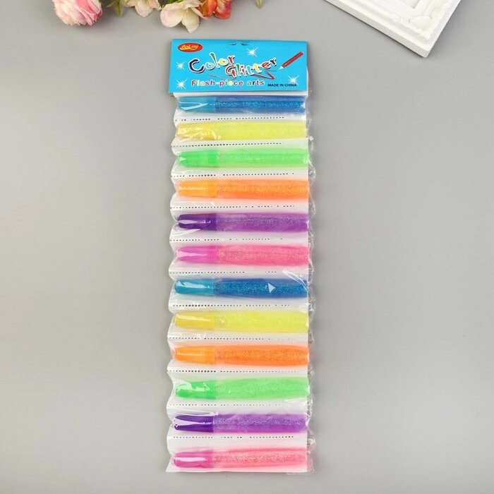 Глиттер клеевой (набор 12 шт) Пастель с блёстками" в тюбике, 10 г